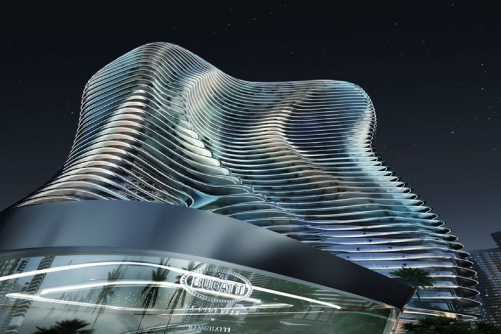 Distinguished by its striking façade, the Bugatti Residences Dubai captures the essence of Bugatti's iconic aesthetics with its exterior that boasts a seamless fusion of sleek lines and avant-garde design, reflecting the brand's commitment to pushing the boundaries of style and performance. A symphony of glass, steel, and immaculate craftsmanship evokes the precision engineering that defines Bugatti's heritage.