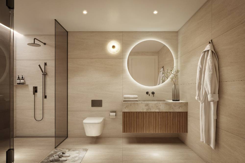 The residences feature spacious layouts across 1,2 and 3 bedroom apartments that are being offered fully furnished, fully equipped with kitchen appliances by Miele and also fully decorated with attention to smallest details. Finishes include natural stone and wood flooring, bespoke luxury cabinetry, double-glazed windows, creating tranquil and timeless interiors defined by elegance, balance, and exceptional craftsmanship.