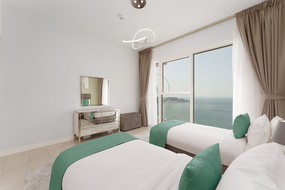 This beautiful and bright three bedroom apartment has a generous layout of 1959 sqft with floor to ceiling windows embracing the natural daylight and absolutely breathtaking uninterrupted sea views as well as Bluewaters and Dubai Eye views, The Address JBR and of course Palm Jumeirah's gem Atlantis The Royal and The Atlantis - truly the best views that Dubai beachfront properties can possibly offer now and in the future as La Vie is strategically located on the very first line of the beach itself offering its residents unbeatable advantage of what beachfront lifestyle in Dubai truly means.