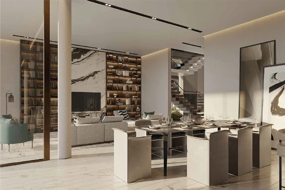 This stunning beach villa with sophisticated facade and it's chic neutral tones that blends into the luxury island lifestyle experience surrounded by natural elements comprises of six bedrooms, eight bathrooms, both chef's kitchen and the prep kitchen as well as staff quarter, extra family room and a spectacular roof lounge and terrace.